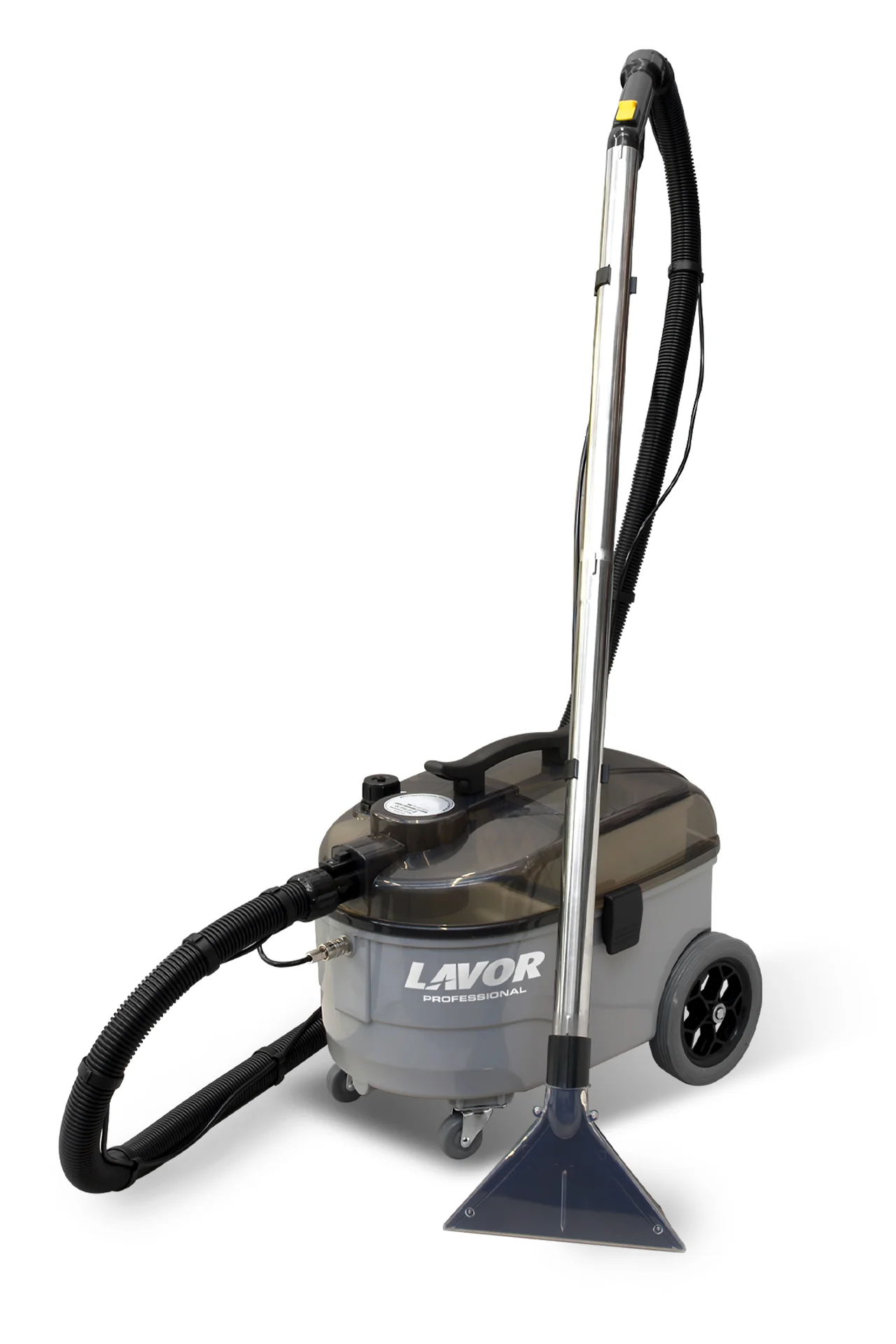 Lavor Jupiter utmerker seg med grundig rengjøring takket være et sprøytetrykk på 4 bar og en sugeeffekt på 230 mbar. Sprøyte- og ekstraksjonsfunksjonene kan brukes separat.